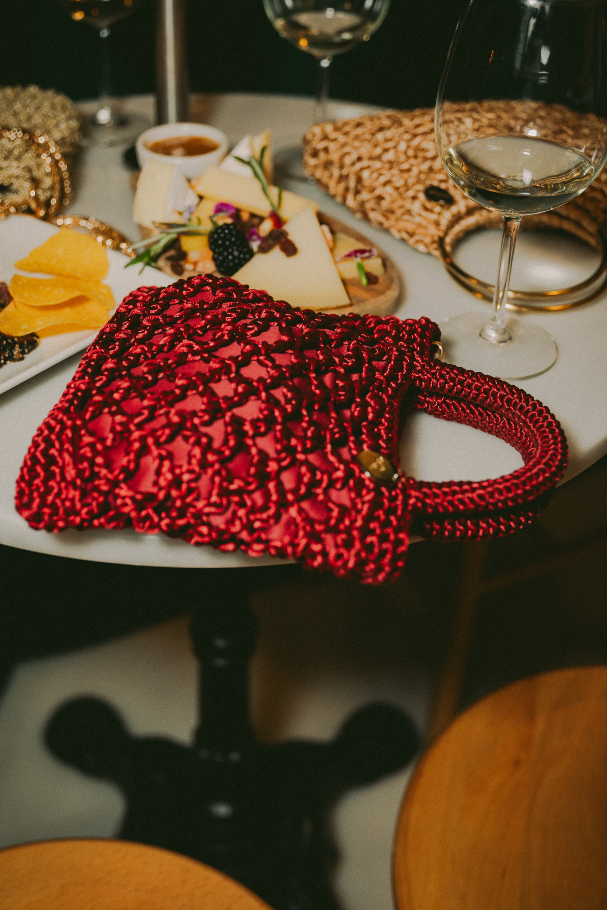 Bolso tejido a mano con forro satinado y broche metálico. Asa larga tejida para crossbody removible para dar versatilidad de uso.